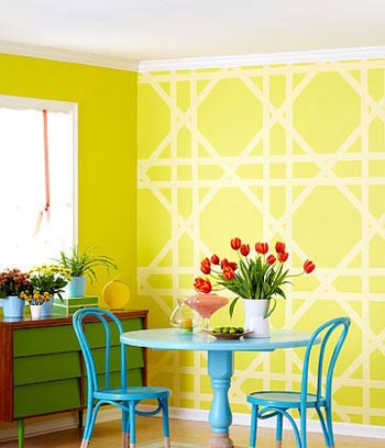 在所有的色彩里,黄色也许是最为跳脱和显眼的。黄色的墙面总是比较难搭配的,但是这间客厅的主人却巧妙的搭配出了一个个性的空间。米色的双人沙发和黄色花纹的单人沙发搭配着黑白相间的地毯,让空间的色彩一下子丰富起来。旁边长势茂盛的绿植给空间增加了不少生机